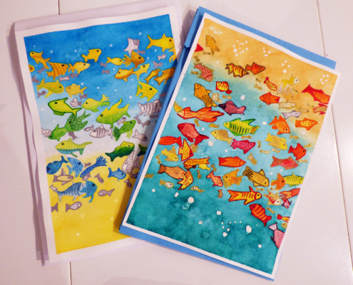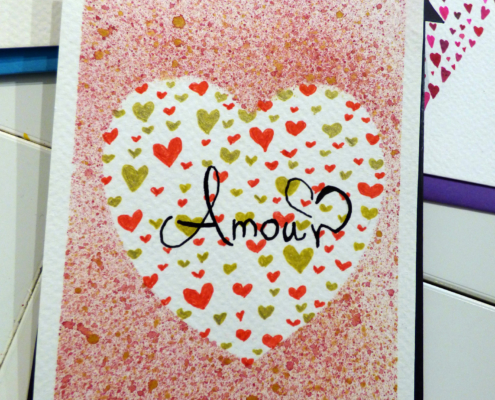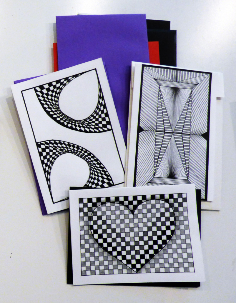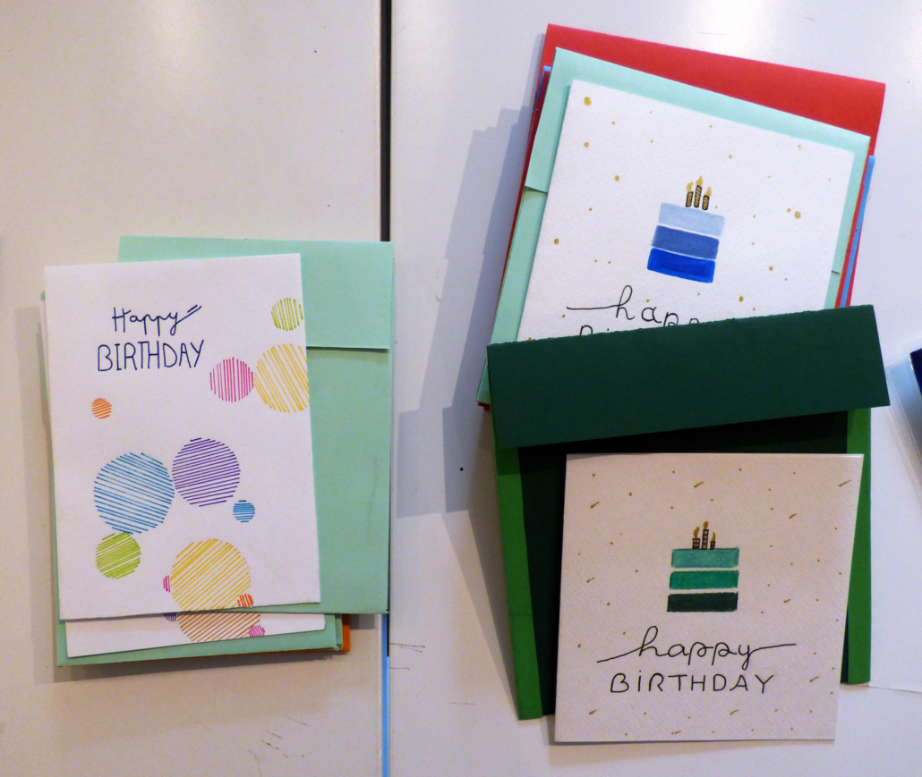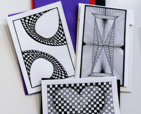 Dans la fabrication, les techniques utilisées sont principalement : l’aquarelle, le dessin (crayons, feutres, pointes fines), le pliage (pop-up), le collage, la calligraphie, les jeux graphiques comme le zentangle et la reliure. Les motifs et coloris sont variés et sont parfois accompagnés d’un texte ou de bons vœux.