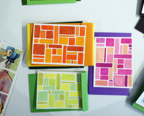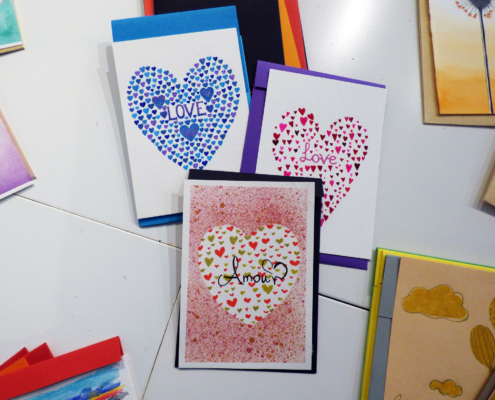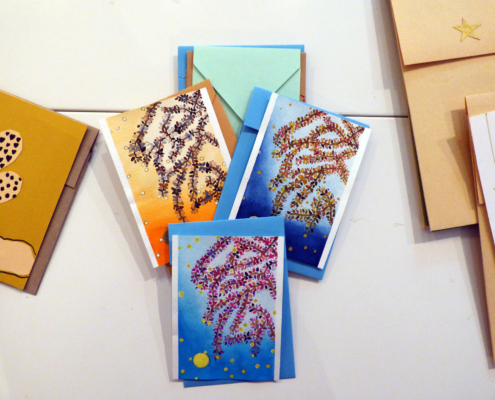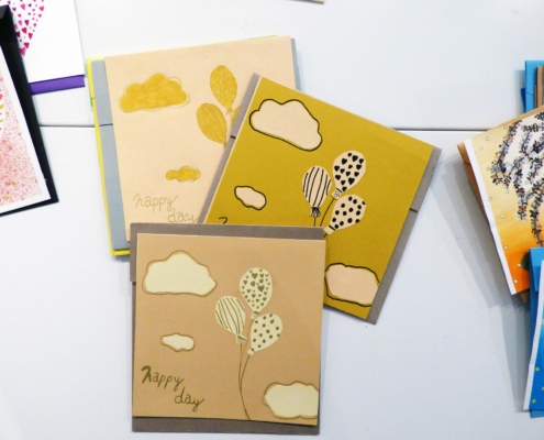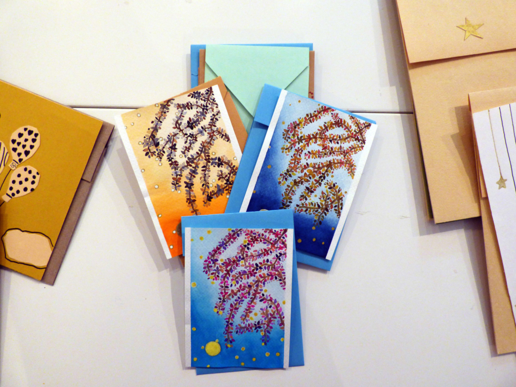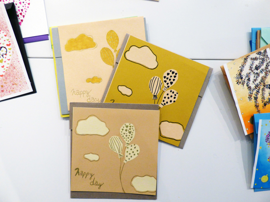Pour guider la réalisation de ces objets, des fiches techniques et des prototypes ont été mis au point pour permettre à chacun, sans compétence artistique particulière, de s’investir dans la production d’articles de papeterie destinés à la vente. La fabrication est entièrement artisanale et se décline sous différentes formes : cartes de vœux (format A6 et A5), enveloppes, carnets (formats A8, A6 et A5) et marque-pages.
